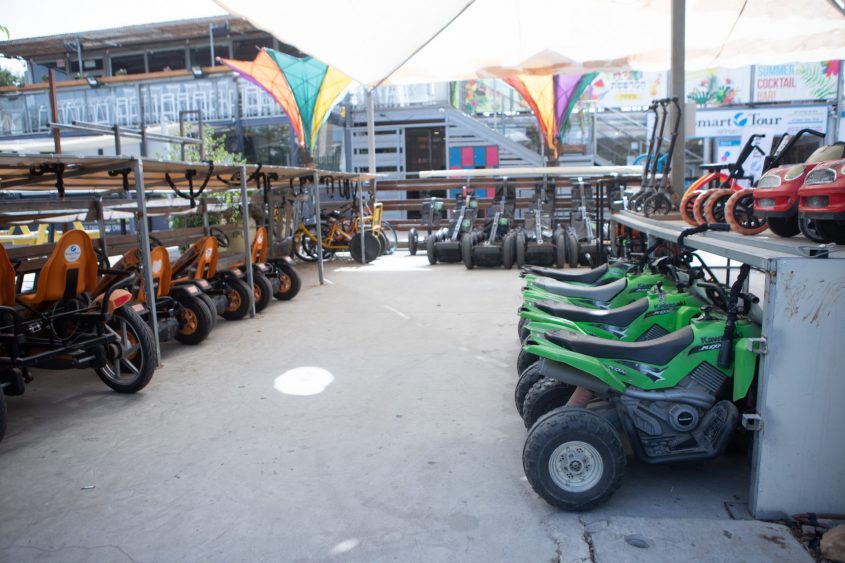 ניתן כיום למצוא במתחם אופניים רגילים למבוגרים ולילדים, אופניים חשמליים, אופני פדלים לילדים ואופני פדלים למשפחות. גם לקטנים דאגו בדמות טרקטורונים חשמליים ומיני קופרים שאותם ההורים יכולים להסיע.
